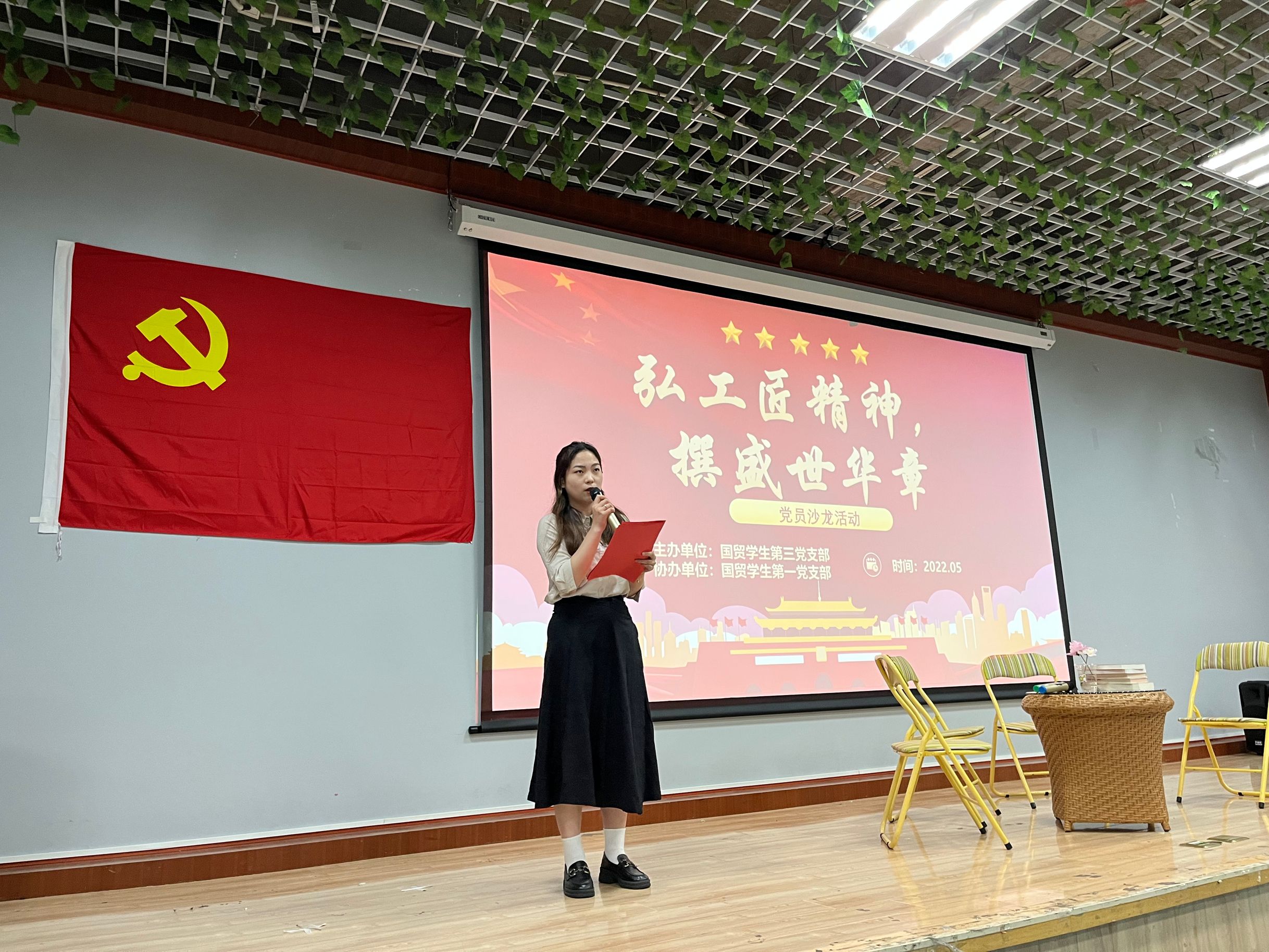 为大力弘扬劳模精神、劳动精神、工匠精神,引导广大毕业生党员深刻理解工匠的内涵,凝聚工匠精神力量,2022年5月22日beat365中文官方网站学生第三党支部联合学生第一党支部在博雅厅举办以“弘工匠精神,撰盛世华章”为主题的党员沙龙活动。支部书记林千惠、郑亚梅、支部全体党员参加了沙龙活动。