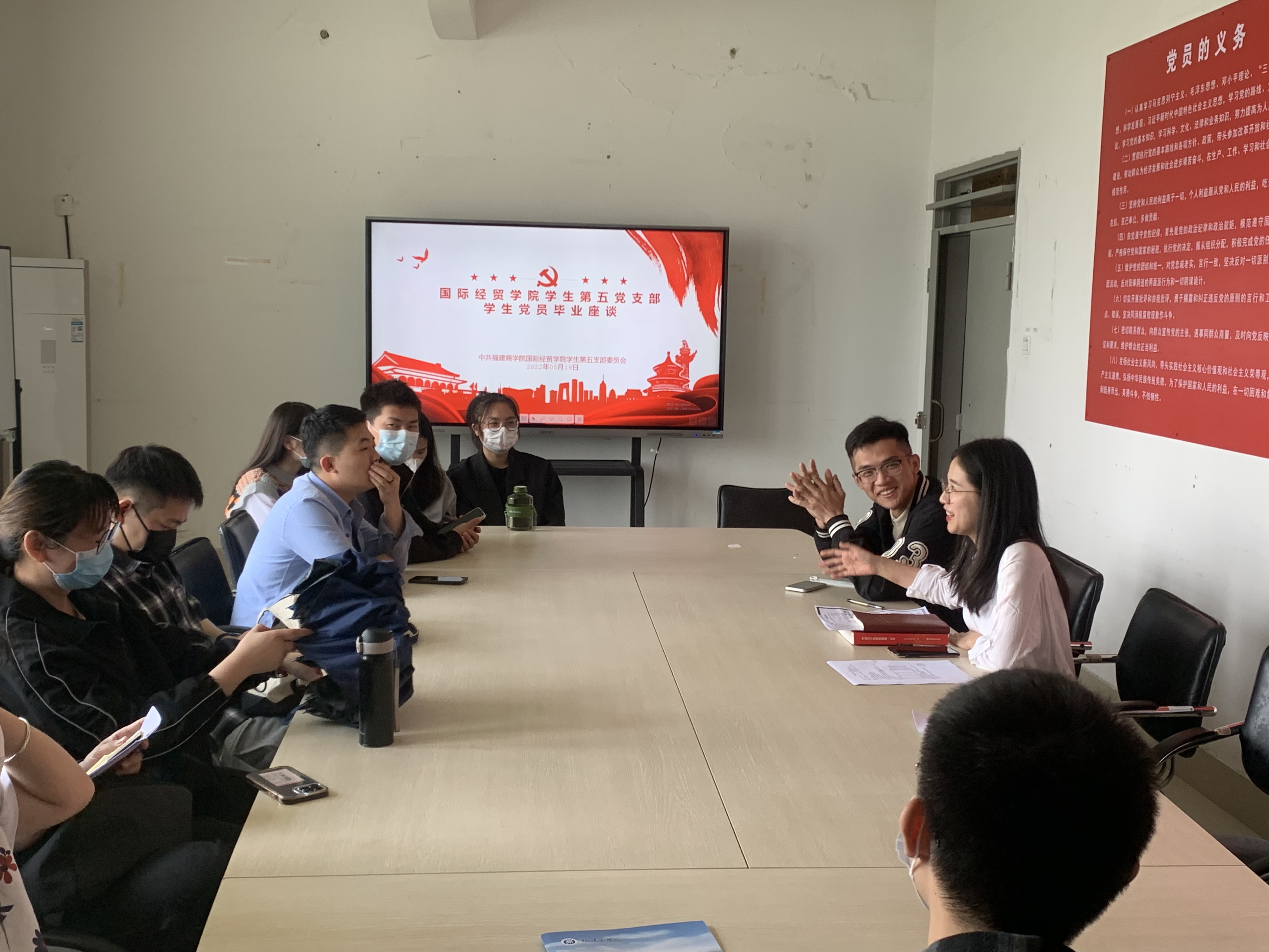 2022年5月19日中午,beat365中文官方网站学生第五党支部在学院三楼会议室召开2022届毕业生党员座谈会。会议由学生第五党支部书记林超主持,全体毕业生党员参会。