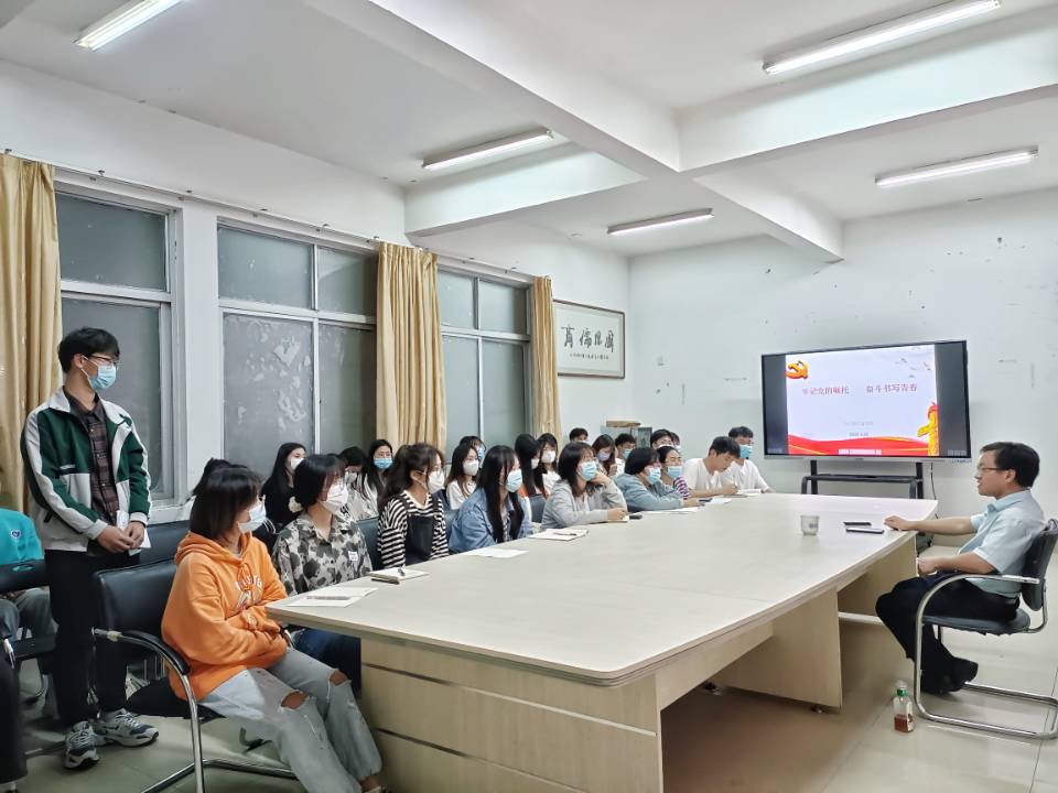4月22日,beat365中文官方网站习近平新时代中国特色社会主义思想读书社在聚贤楼307室开展“牢记党的嘱托,奋斗书写青春”主题讲座,马克思主义学院谢东俊副教授应邀作专题报告,学院读书社指导老师及社员代表参加了本次讲座。
