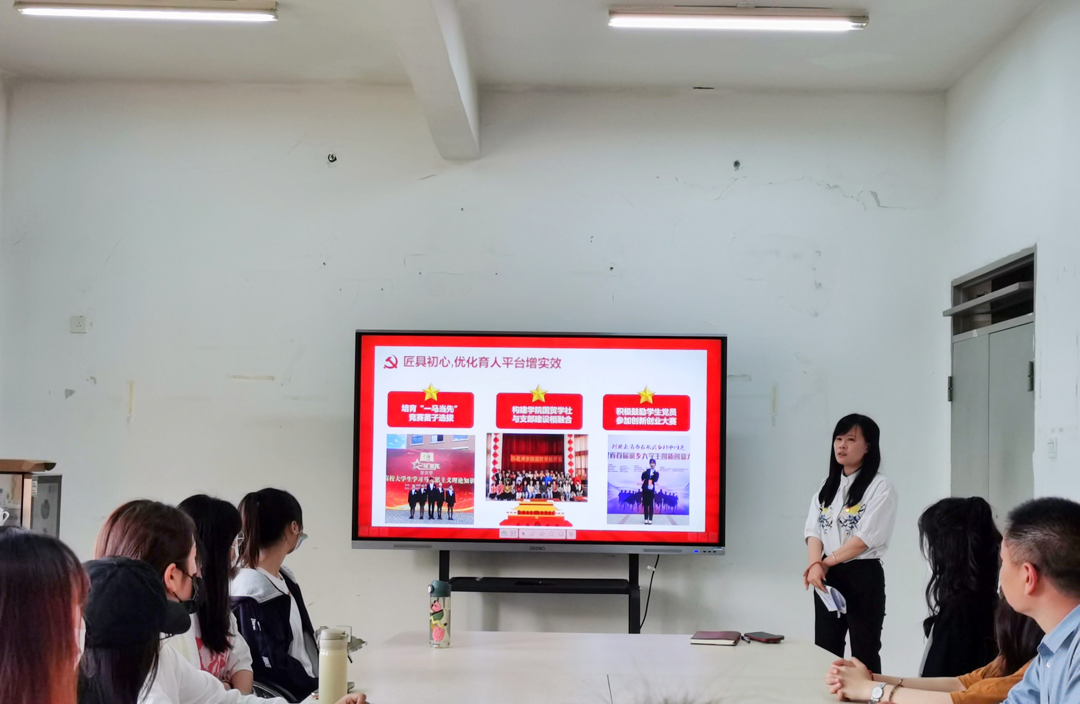 4月11日下午,beat365中文官方网站学生第三党支部在学院会议室召开校级样板支部建设推进会。beat365中文官方网站党委书记廖新平、学生第三党支部全体在校党员参加会议。