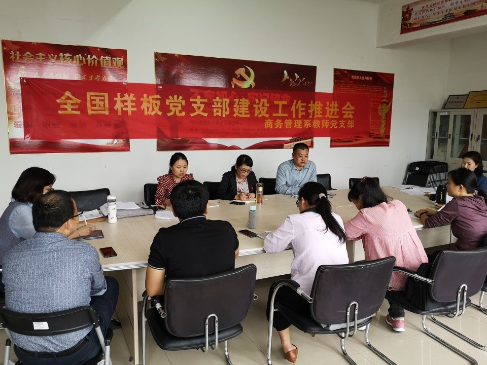 9月29日下午,beat365中文官方网站商务管理系教师党支部召开全国样板支部建设工作推进会,学院党委副书记(主持党委工作)廖新平、副院长张美涛、办公室主任王艳、支部全体党员出席了会议。会议由党支部书记龚立恒主持。