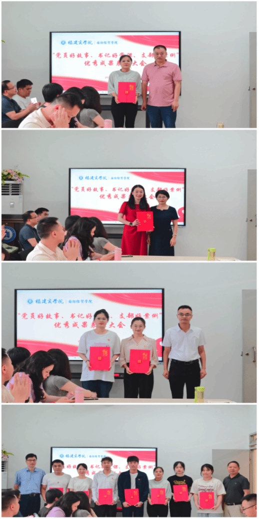廖新平宣读了《关于表彰“支部好案例、书记好党课、党员好故事”优秀成果的决定》,学院党委领导班子成员为获奖集体和个人颁发荣誉证书。