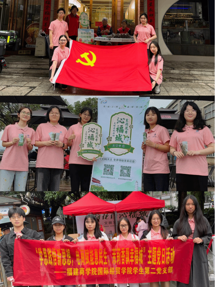 支部同学以茉莉为文化纽带,深度挖掘“茉莉花茶文化”的深厚底蕴与“榕城精神”的时代内涵,通过“电商+志愿服务”驱动,创新探索“茉莉文化+党建活动”的融合路径,让茉莉芬芳浸润福州城。