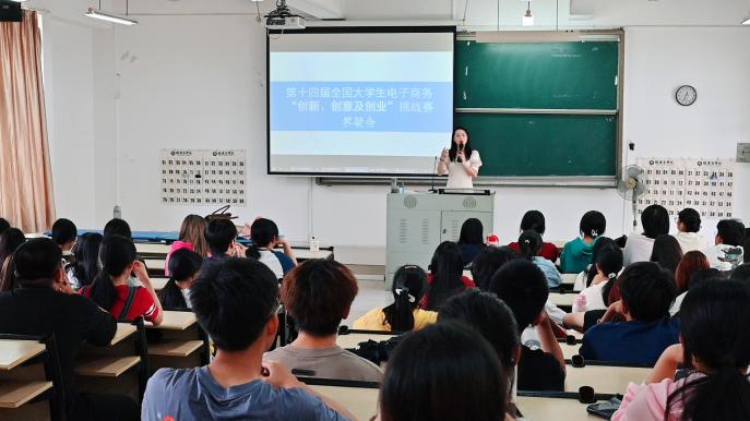 为进一步做好第十四届全国大学生电子商务“创新、创意及创业”挑战赛备赛工作,为有意向参与赛事的同学们答疑解惑,10月19日,beat365中文官方网站举办答疑会。优秀指导老师卢美琴、辅导员林明进行赛事说明和答疑,学院创新创业部干事代表、各专业学生代表近100人参加会议。