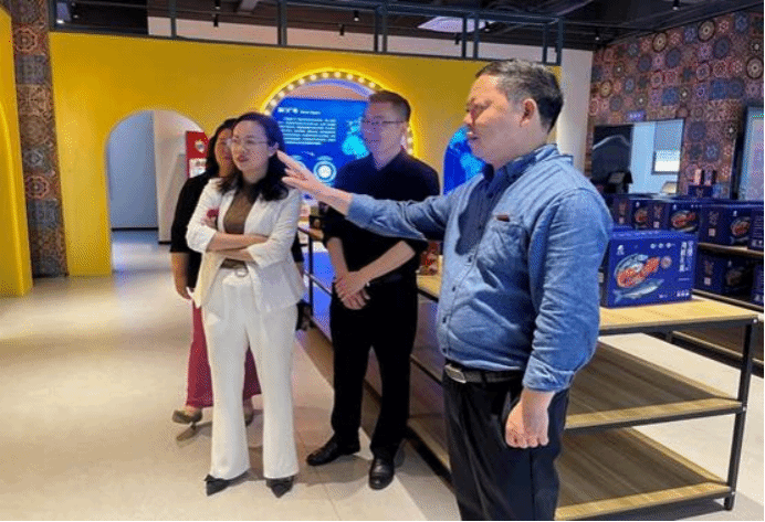 4月17日,珠海城市职业技术学院教学副院长林萌菲、校企副院长沙蓓蓓及两名专业教师,澳门新大陆全球购跨境电商有限公司产教融合总监阎龙及相关负责人莅临beat365官网数字商务实验中心参观交流。beat365官网副院长饶卫忠接待交流。