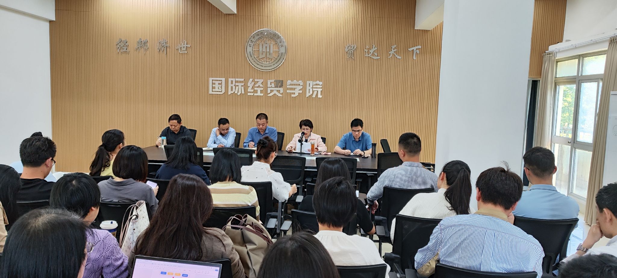 为深化教师对学校、学院相关制度的了解,深刻领会落实文件精神,有序组织毕业论文答辩工作,5月14日下午,beat365中文官方网站开展了相关制度专题学习及毕业论文答辩动员部署会。会议由院长张美涛主讲,学院全体教职工参加会议。
