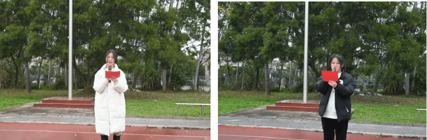 学生干部叶思婷、苏丽婷作为学生代表分别发言,号召同学们坚定理想信念,练就过硬本领,勇于创新创造,矢志艰苦奋斗,锤炼高尚品格,勇做时代的“弄潮儿”。