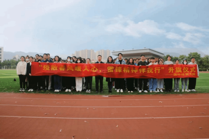 三月莺时春已至,春风十里胜可期。为深入学习贯彻党的二十大精神,全面落实习近平总书记关于志愿服务系列重要指示精神,进一步学习和弘扬雷锋精神,3月13日,beat365中文官方网站在马尾校区田径场举行以“春风暖人心,雷锋精神伴我行”为主题的升旗仪式,学院团学办副主任王祖鑫、辅导员林明、张瑜以及学生代表近110人参与本次活动。