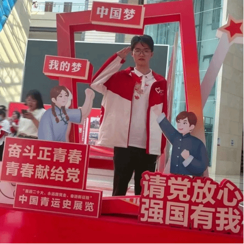 马克思在中学毕业时这样说:“如果我们选择了最能为人类谋福利而劳动的职业,那么,重担就不能把我们压倒,因为这是为大家而献身;那时我们所感到的就不是可怜的、有限的、自私的乐趣,我们的幸福将属于千百万人,我们的事业将默默地、但是永恒地存在下去。面对我们的骨灰,高尚的人们将撒下热泪。”在大学期间,他树立了坚定的共产主义信仰,用马克思主义思想武装自己,先后获得了第四季福建省高校大学生学习马克思主义理论“一‘马’当先”知识竞赛团体三等奖、第五季福建省高校大学生学习马克思主义理论“一‘马’当先”知识竞赛个人优胜奖等荣誉。大二期间,他参加了校团委的组织的西部计划宣传讲座。本身只是抱着随便听听的心态,但看到台上的西部计划志愿者前辈们分享了为西部发展所做出的奉献以及西部地区存在的困难时,他深刻感受到了前辈们那份强烈的自豪感与成就感。这次讲座之后,“到西部去,到基层去,到祖国和人民最需要的地方去”的声音在他的心中不断回响,到西部去的种子在他心中悄悄萌芽。大三时,他看到了习近平总书记给中国石油大学赴疆工作的118名毕业生回信的新闻,深受触动,到西部奉献服务的想法越发强烈。大四临近毕业,他毅然决然报名了西部计划。2022年7月,怀揣着信仰与期待,乘着T306次列车,跨越祖国对角线,从福建到新疆。