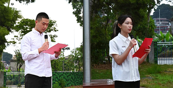 2022级电子商务专业的李秋滢和国际经济与贸易(专升本)的季台贤两位同学,作为学生代表进行了国旗下的发言。他们回顾了步入新的学习阶段的心路历程,表示作为新福商人,将铭记“明德、诚信、允能、笃行”的校训,乘理想之马,挥鞭启程;作为新国贸人,将传承和弘扬“富爱心、尚劳躬、守诚信、志高远、敢担当、具匠心、善创新、勇拼搏”的核心素养,仰望星空、脚踏实地。