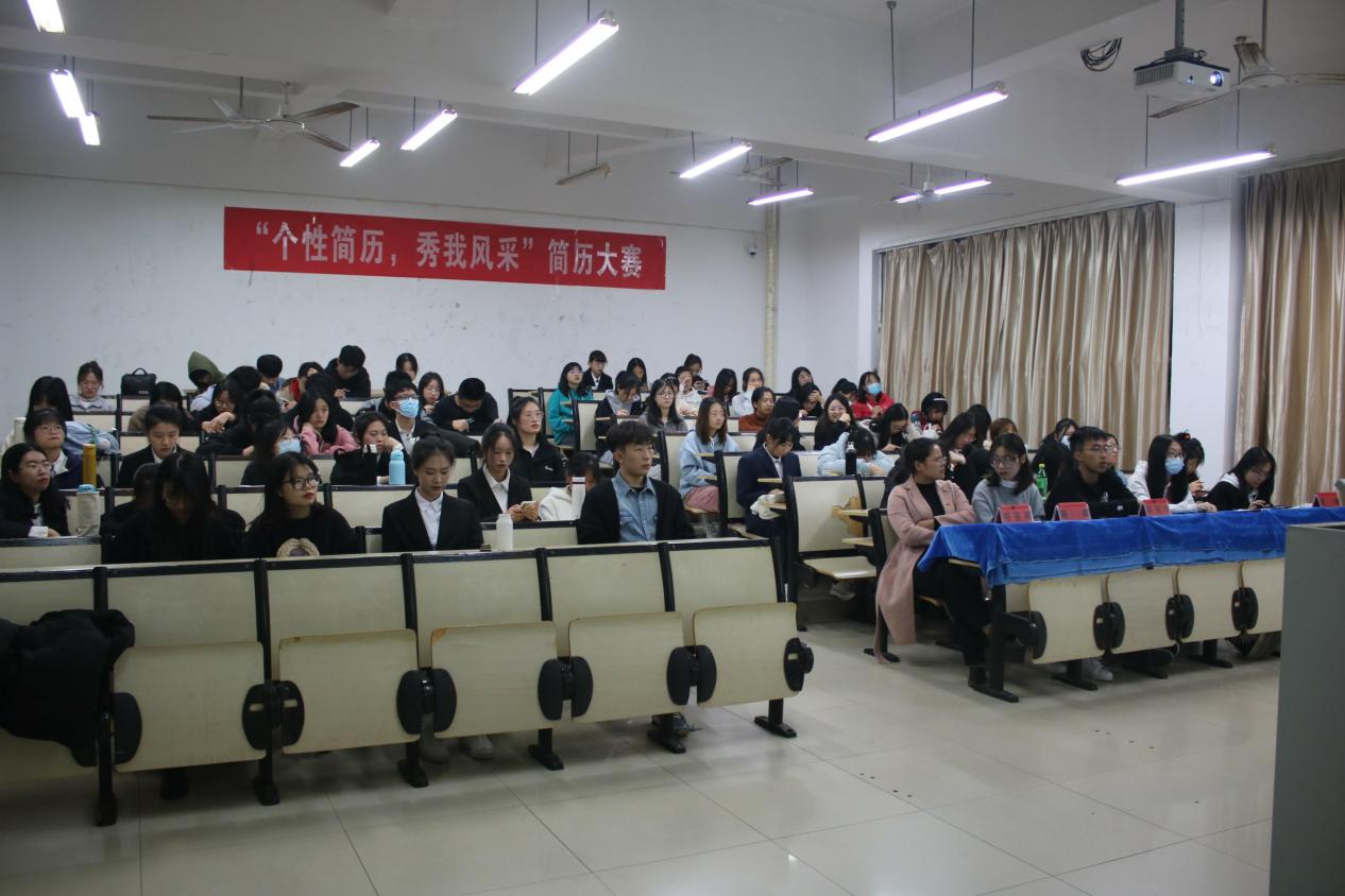 2021年11月25日,beat365官网第三届简历大赛在诚信T4隆重举行,辅导员郑亚梅老师和团委学生会干部代表担任评委,部分学生作为观众参加了本次活动。