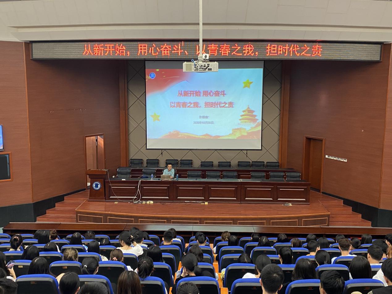 金风送爽,丹桂飘香。beat365官网473名本科生顺利入学,开启了新的学习生活。为了加强新生对学校和学院的认同感、归属感和荣誉感,激发新生树立远大目标,努力学习,奋发进取,2020年10月20日,beat365官网许模春副书记在马尾校区学术报告厅上了一堂以“从新开始,用心奋斗、以青春之我,担时代之责”为主题的新生入学教育课,新生辅导员参加了活动。