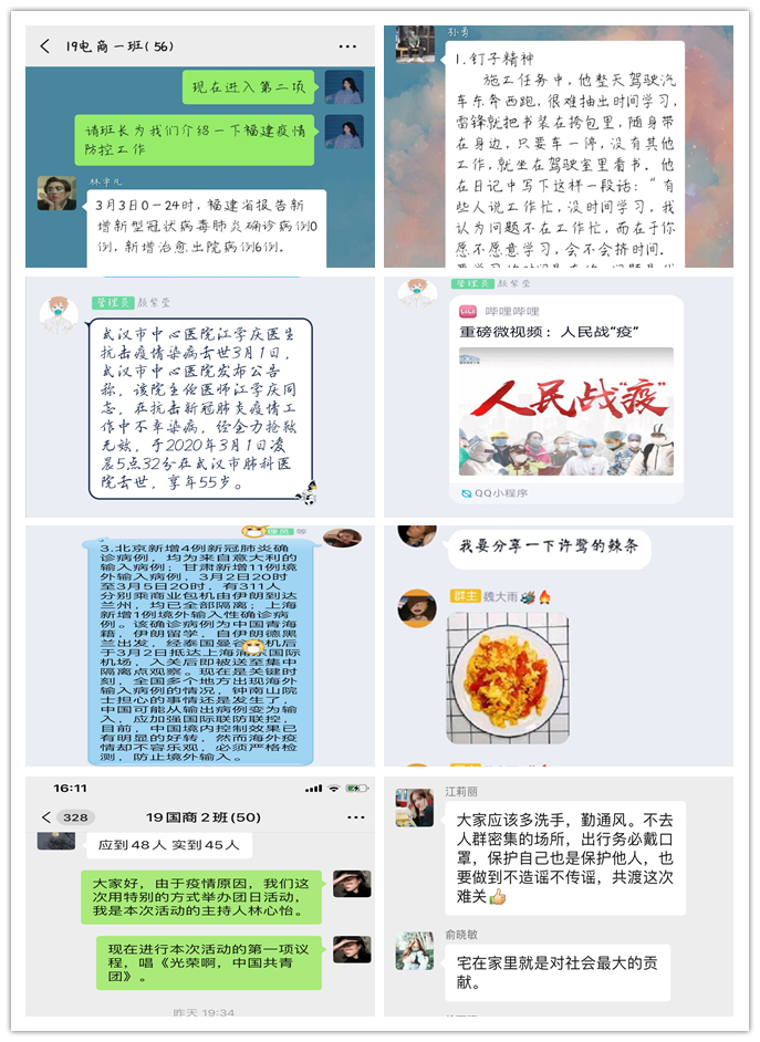 各团支部开展“共克时艰 战疫有我”主题团日活动。