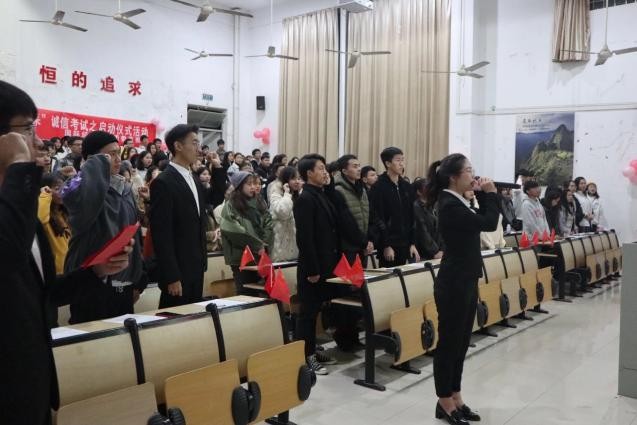 活动过程中,陈雅玲同学作为学生代表发表了关于诚信的演讲,使同学们充分认识到诚信的重要意义。随后,郑亚梅老师在发言中分享诚信故事,要求同学们树道德之新风,立诚信之根本,并提出诚信要求。接着,嘉宾以及同学们有序移动到海报前,在诚信树上按下手印,以作诚信之花。最后全体起立,由自律会会长陈杨学姐带领同学们宣誓,并在诚信承诺书上郑重地签下自己的名字。