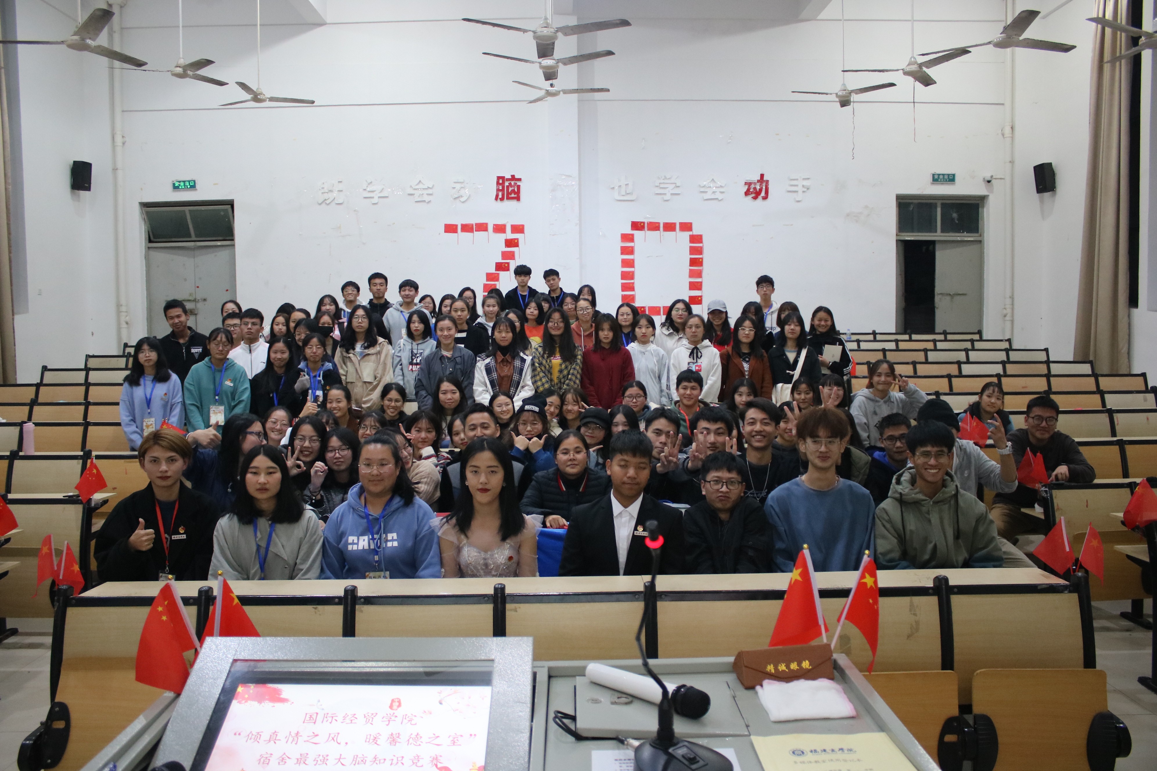 2019年12月2日,beat365中文官方网站自律会于马尾校区欧洲厅举办“倾真情之风,暖馨德之室”第二届宿舍文化节系列活动之宿舍最强大脑竞答活动。beat365中文官方网站国贸系学生党支部书记吴炎敏、自律会指导老师郑亚梅、参赛宿舍以及各班代表参加了此次活动。