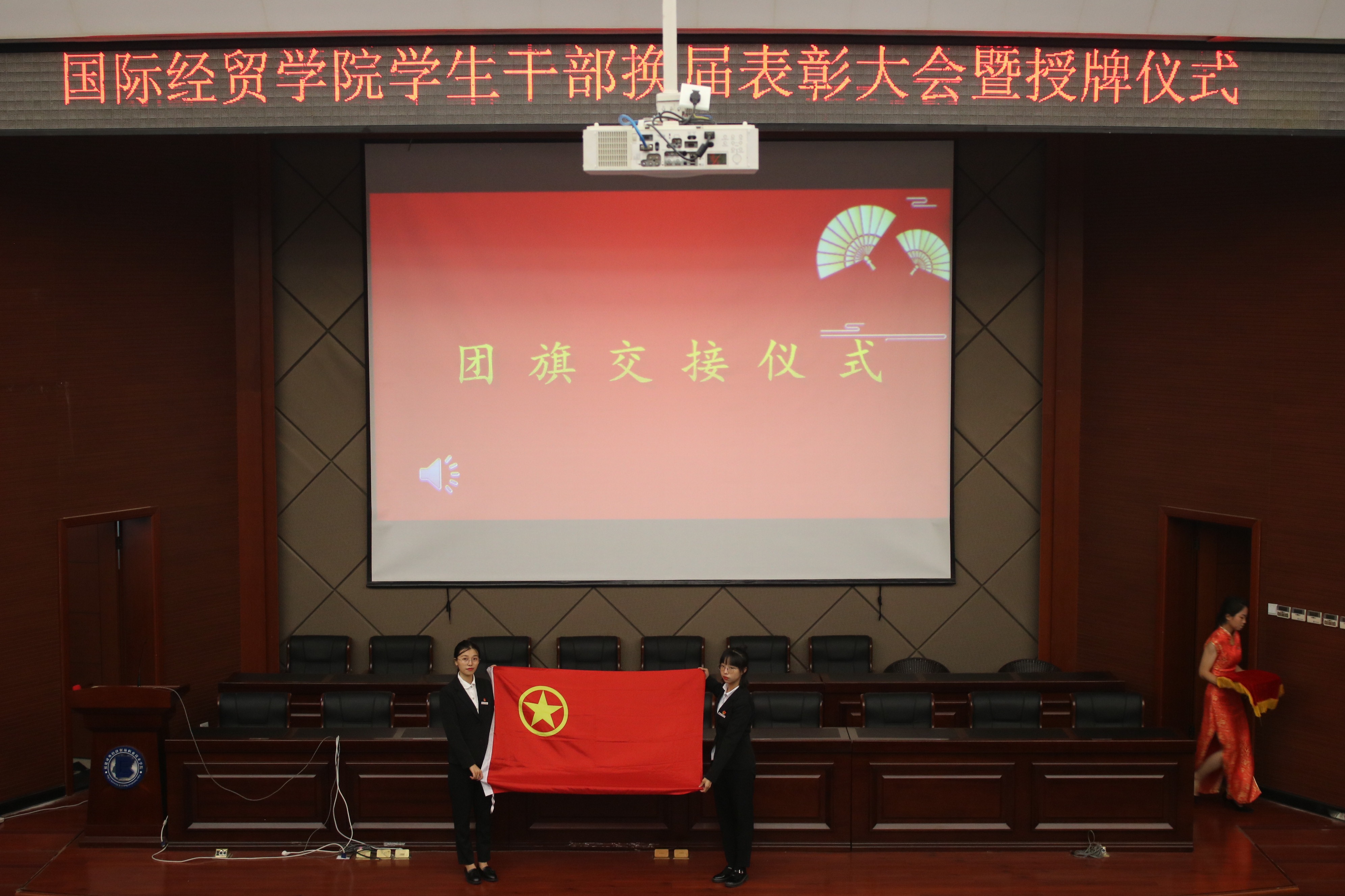 10月29日,beat365中文官方网站在马尾校区学术报告厅举办“沐星而聚,风华国贸”团委第三届学生干部交接大会暨新干事授牌仪式。本次活动邀请到马尾校区各学院学生干部代表,许模春副书记、林超老师、郑亚梅老师、郑祖强老师参加本次活动。