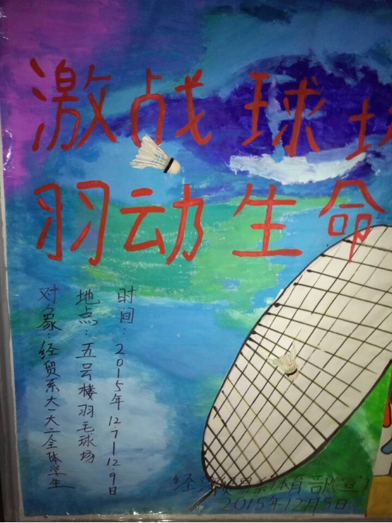 为了提高大学生的综合素质,营造良好的校风学风,进一步丰富我系学生的课余文化生活,促进本系体育文化事业的发展,展示当代大学生的体育风采,渲染体育文化气息,增强大学生的身体素质,经济贸易系学生会体育部于2015年12月7日-12月9日期间特此举办羽毛球赛。
