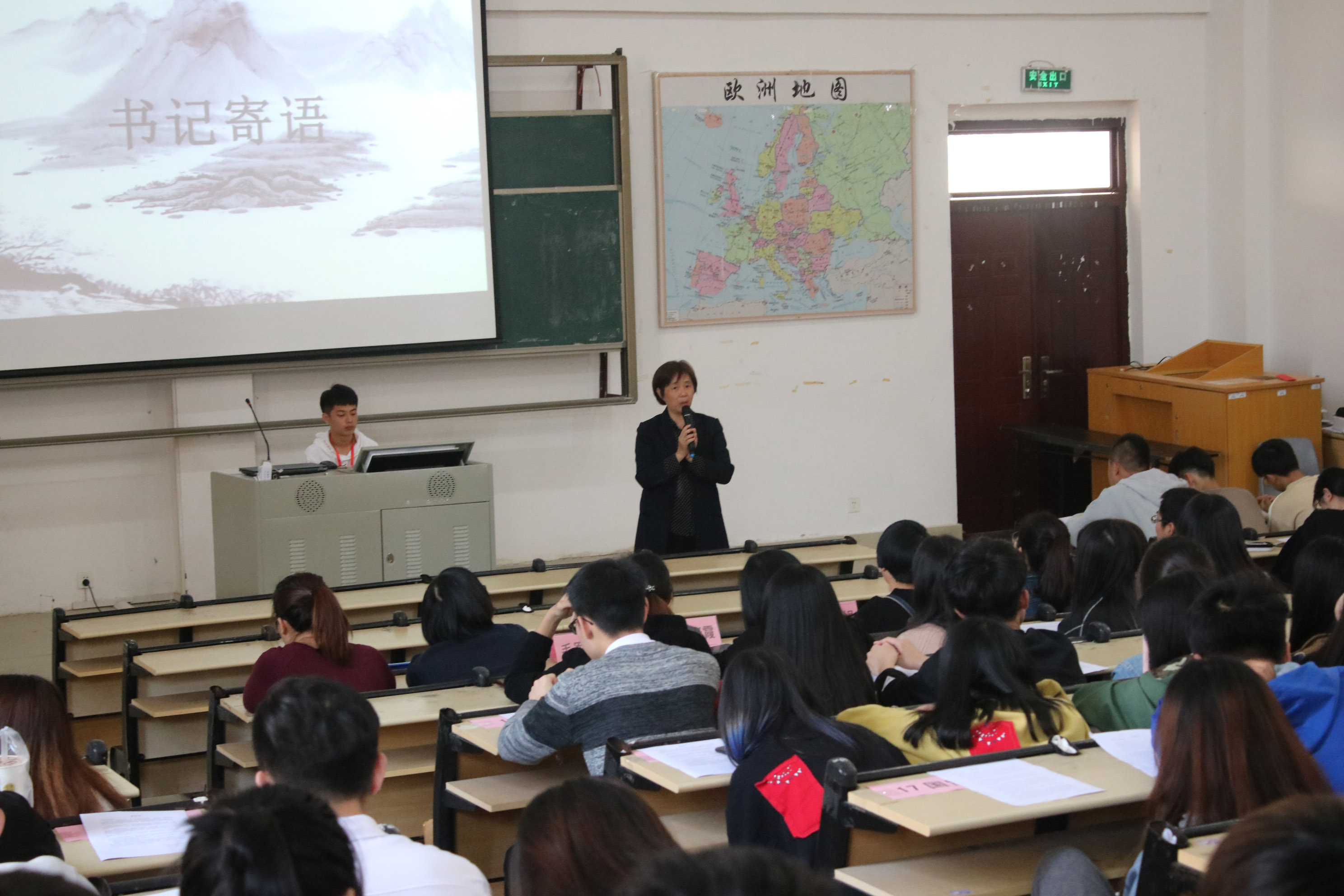 随后教研室主任毛军育老师就我系实施“无手机课堂”的目的意义进行讲解,同时希望同学们端正学习态度,从健康使用手机开始,严肃课堂纪律,高效利用课堂学习时间,提升学习质量。最后由学生代表们上台在横幅上签字以表放下手机,回归课堂的决心。