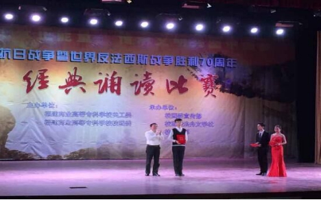 11月上旬,我系举办了“诵经典聚能量,共圆中国梦”的朗诵比赛。同学们热情高涨,各班均组队参赛,比赛成效甚好,现场表现精彩。在激烈的角逐下,我系最终选送《青春·中国·梦》以及《古老萌动了青春》参加我校校团委11月中旬举办的“纪念抗日战争胜利暨反法西斯战争胜利70周年”的经典诵读比赛。一句句铿锵有力的言语,一幕幕独具一格的画面,我系选手一如既往地展现出经济贸易系在语言艺术类上的天赋,在当晚的舞台上脱颖而出,荣获一等奖和三等奖的傲人成绩。