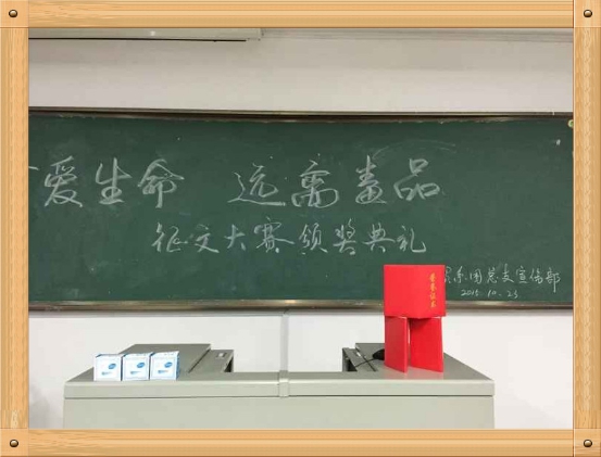 此次“珍爱生命,远离毒品”征文大赛给同学们提供了一个自我展示的机会与平台,并在其中警醒同学们远离毒品,使同学们认识到了远离毒品的重要意义。同时,我利于我校形成积极、健康、向上的校园文化氛围。