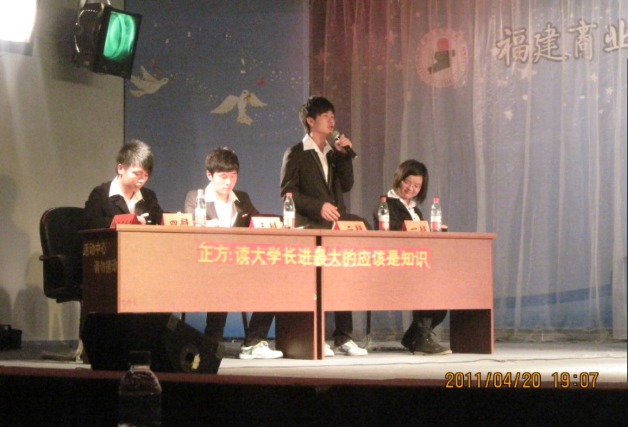 2011年4月20日18:30,福建商专纪念中共建党九十周年之福建商专第十五届“挑战杯”辩论赛初赛,在校学生活动中心拉开序幕。