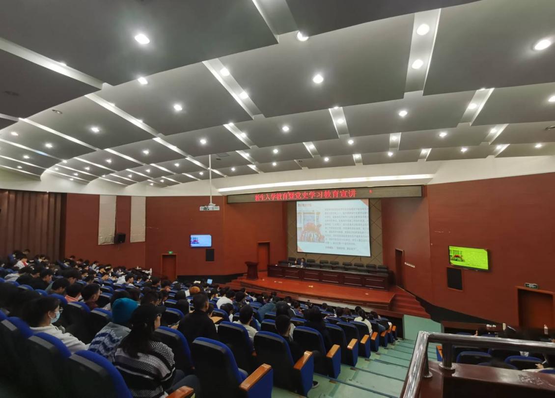 2021年11月28日下午,beat365中文官方网站党委副书记许模春老师给2021级新生作题为《“生在中国,爱在福商”——暨党史学习教育宣讲》的入学教育讲座。2021级432名新生参加本次活动。