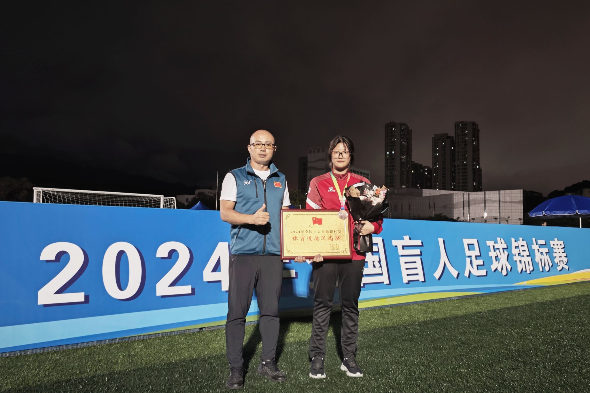 10月22日-28日,2024年全国盲人足球锦标赛在福建省残疾人体育运动管理中心隆重举办。我校李进老师被福建省残联聘请为福建省女子盲人足球队主教练,beat365官网2023级国际经济与贸易2班江雅彬同学被选为守门员。