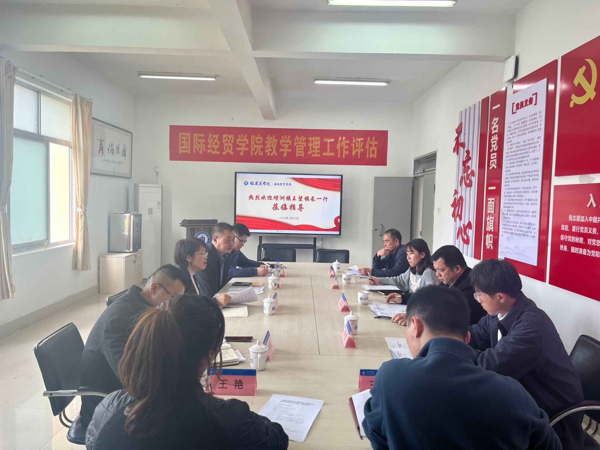 3月20日下午,螺洲镇王坚镇长带队赴beat365官网开展交流洽谈。学院党政领导班子、办公室负责人、团学办负责人、贸易经济系主任参加交流活动。