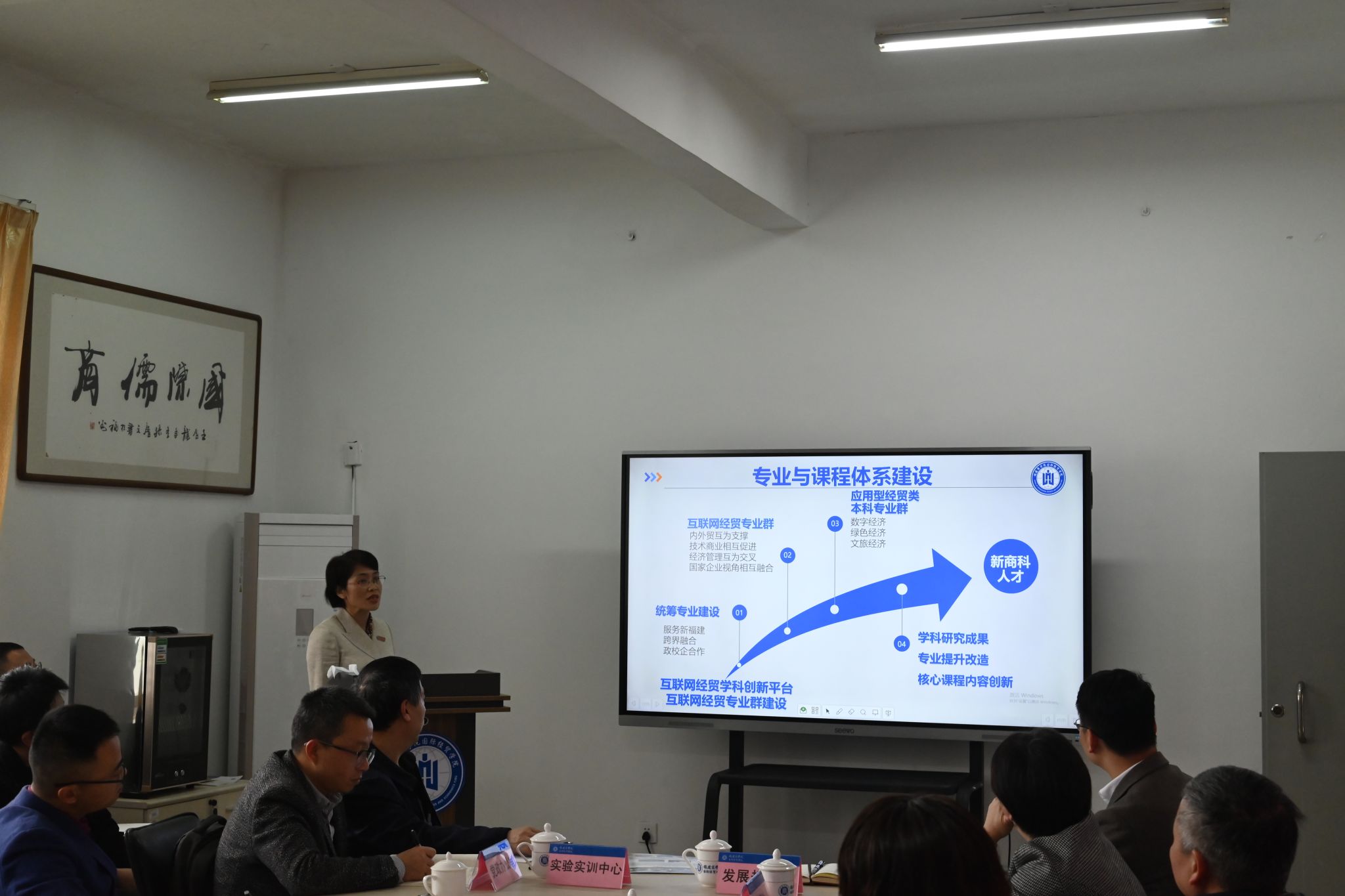 学院院长张美涛围绕学院基本情况、师资队伍、专业与课程体系建设、教科研成果、人才培养成效、存在问题及改革思路等内容进行工作汇报。参会的相关职能部门对学院目前存在的问题与困难进行了工作解答与指导。