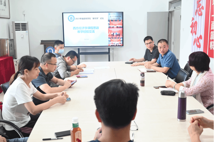 为做好教师发展的迎评促建工作,按照学校“教与学”论坛计划,6月16日,beat365中文官方网站开展西方经济学课程思政教学经验交流研讨,学院领导、贸易经济系全体教师参加,会议由学院副院长、贸易经济系主任林航主持。