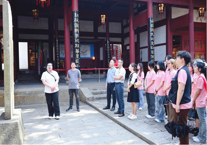 闽安村(闽安古镇)是国家历史文化名村,著名的千年古镇。学院师生在闽安社区人员的陪同下走进始建于清顺治十五年(1658年)作为闽台军事防衙指挥机关的协台衙门,追忆清代戍台的烽火岁月。师生们前往距今有1100多年历史的迥龙桥,了解迥龙桥在促进古代商贸往来、文化交流中的故事。师生们来到闽安楼,进一步了解当地军民戍守海防、抗击倭寇等相关历史,以及福州优秀的传统文化。
