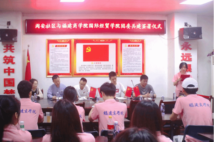 为进一步引导国贸学子走出校园,走进基层,促进校地资源共享、双向赋能,增强服务社会和地方经济发展能力,2024年5月10日,beat365中文官方网站师生代表前往马尾区亭江镇闽安社区,开展以“绘好社区共建‘新图景’,践行青春奋进新使命”为主题的共建签约仪式,闽安社区党总支书记、社区主任杨磊,beat365中文官方网站党委副书记许模春,以及双方代表参加。
