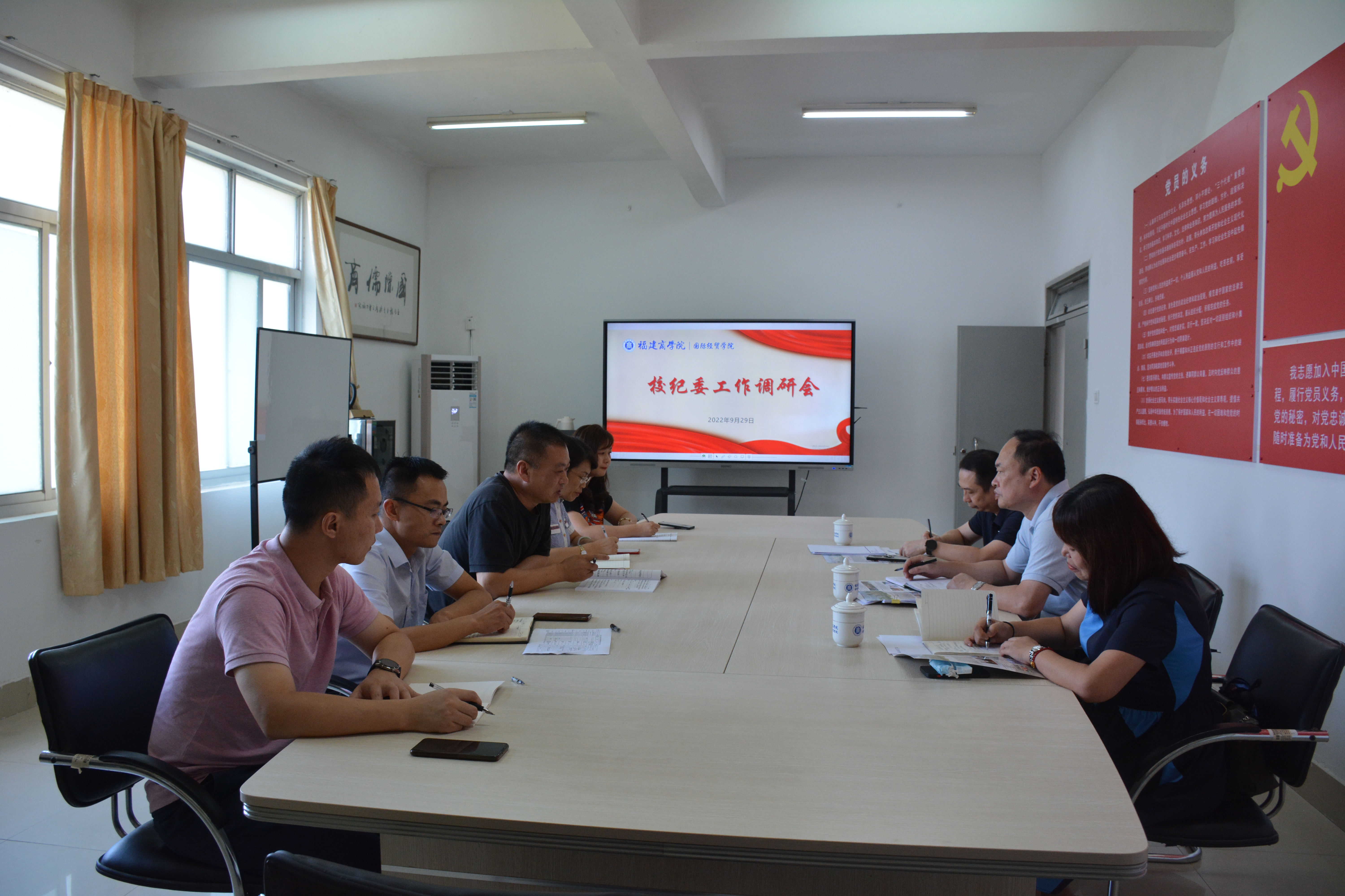 9月29日下午,校纪委书记(监察专员)周训胜到beat365官网调研指导工作,纪委(监察专员办)综合室主任李珍、纪检监察室主任林强陪同调研。全体院领导、办公室主任、团学办副主任参加,会议由院党委书记廖新平主持。