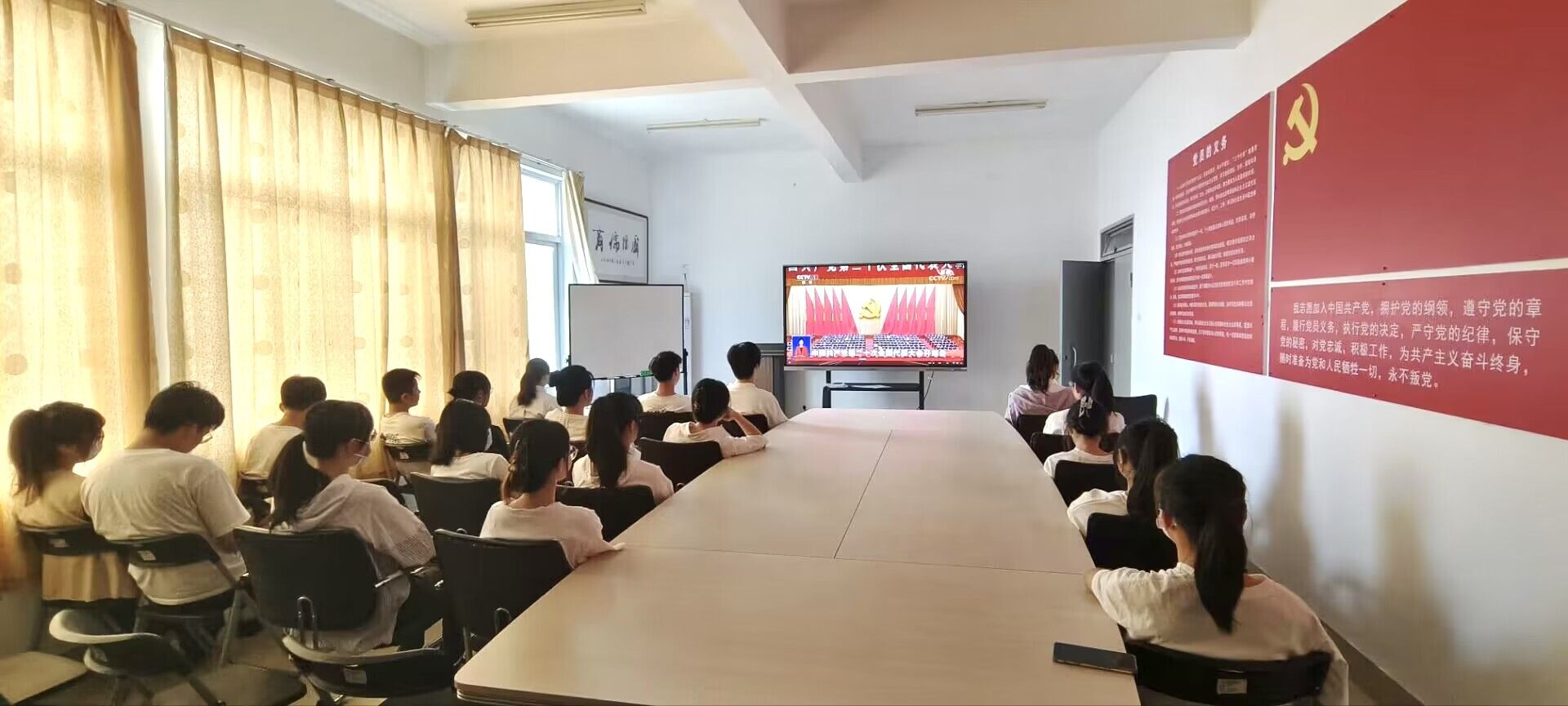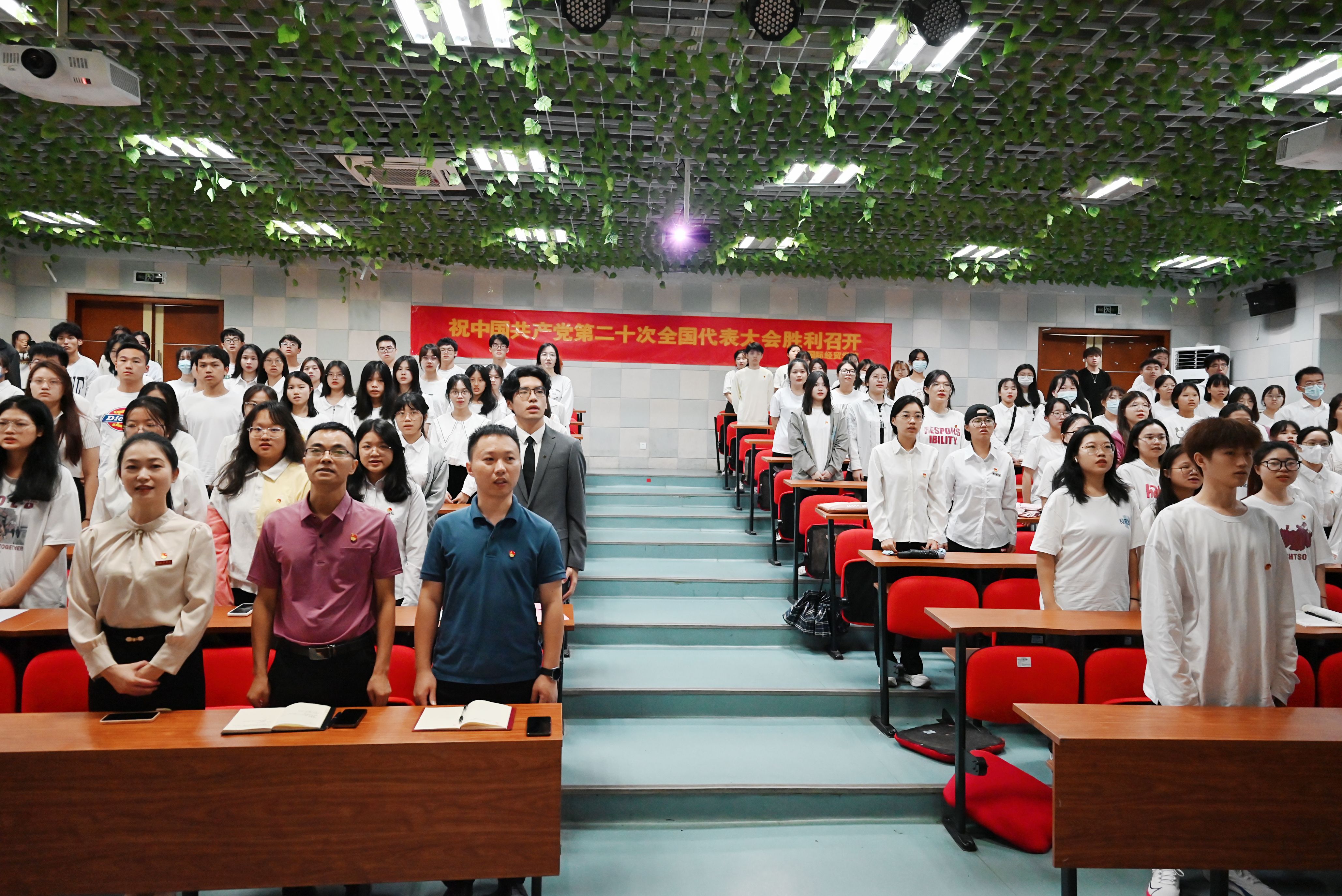 此外,学院各系、办公室、团学办均通过各种方式和途径组织收听收看党的二十大开幕会,认真聆听、学习习近平总书记向大会所作的报告,师生倍受鼓舞,反响热烈。