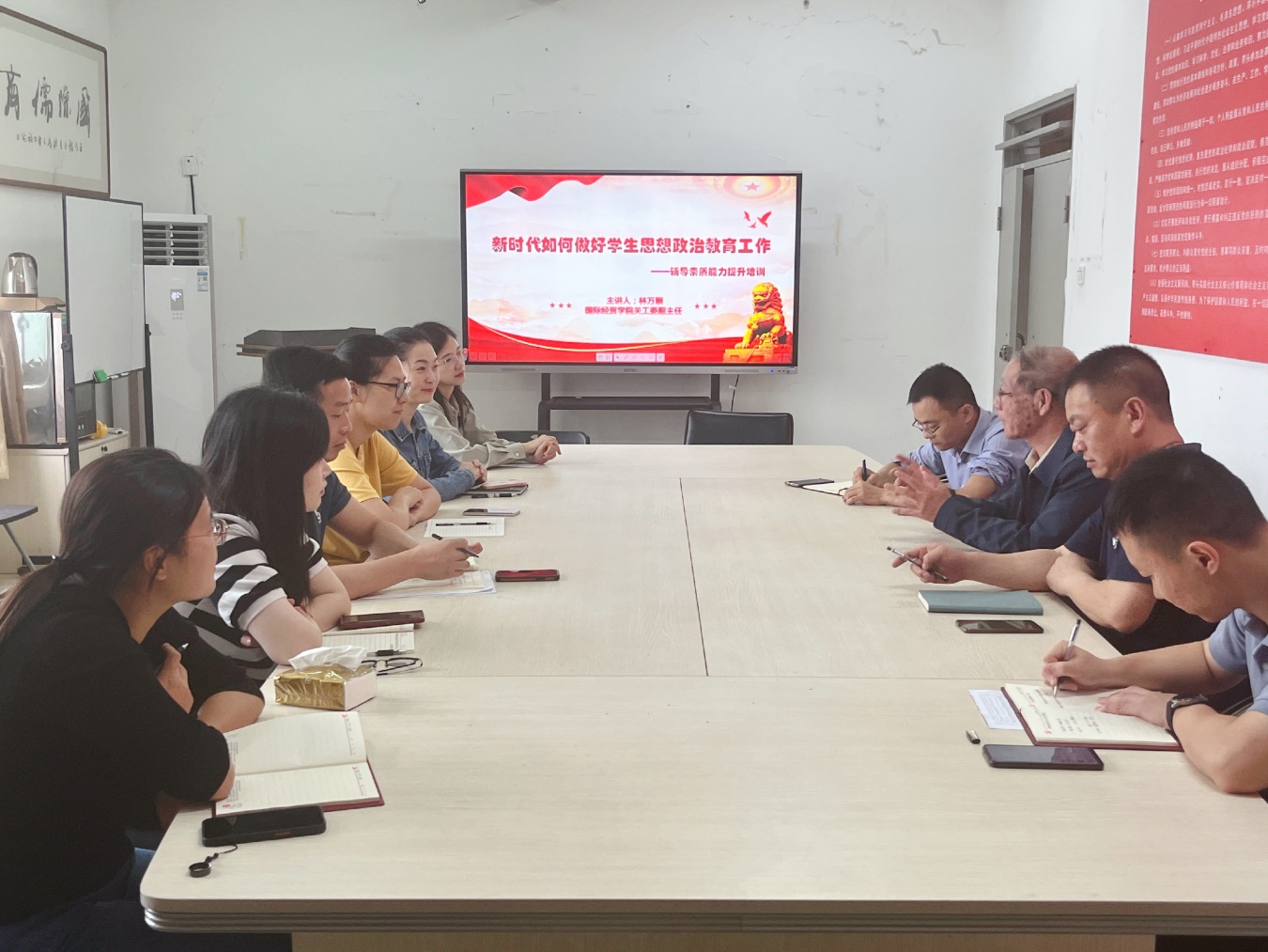 关于辅导员素质能力提升方面,林万顺老师特别指出辅导员是开展大学生思想政治教育的骨干力量,肩负着教育、指导、管理和服务学生的重要职责,并提出三点要求:一是要有强烈的事业心,努力把握学生成才规律,做学生的人生导师和知心朋友;二是要不断学习辅导员工作的理论、方法和经验,努力把学生培养成合格人才;三是要学会创新和思考,以目标为导向,努力做出特色和品牌。