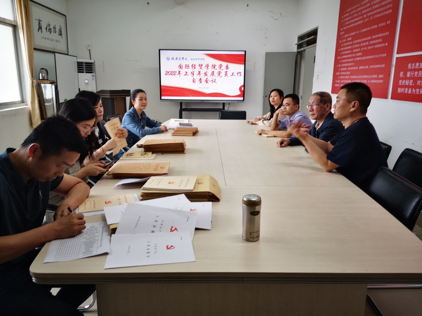 在指导学院党建工作的过程中,林万顺老师参加学院发展党员工作自查,重点围绕《中国共产党发展党员工作细则》和学校发展党员工作规范,包括发展党员工作的流程、发展对象入党材料是否齐全、是否存在缺失、遗漏等事项,提出了指导意见。他充分肯定了学院本次自查工作,表示该工作能够及时总结经验、以查促建高质量做好党员发展工作,有效推动学院党支部发展党员工作规范化。