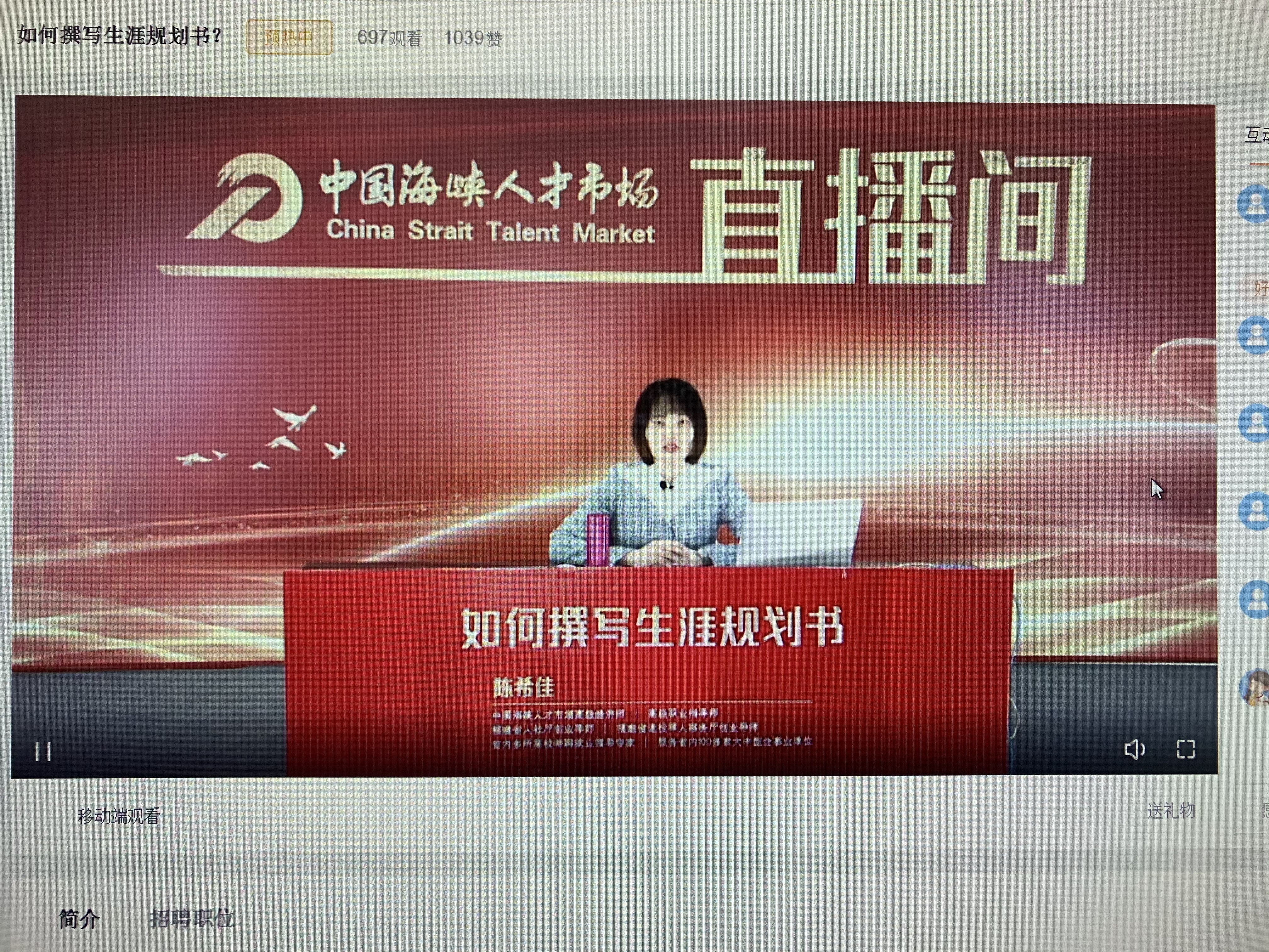 2022年4月2日,beat365中文官方网站邀请中国海峡人才市场高级经济师陈希佳为beat365官网学生开展“如何撰写职业生涯规划书”主题线上直播讲座,学院共有1500余名师生参与了此次讲座。