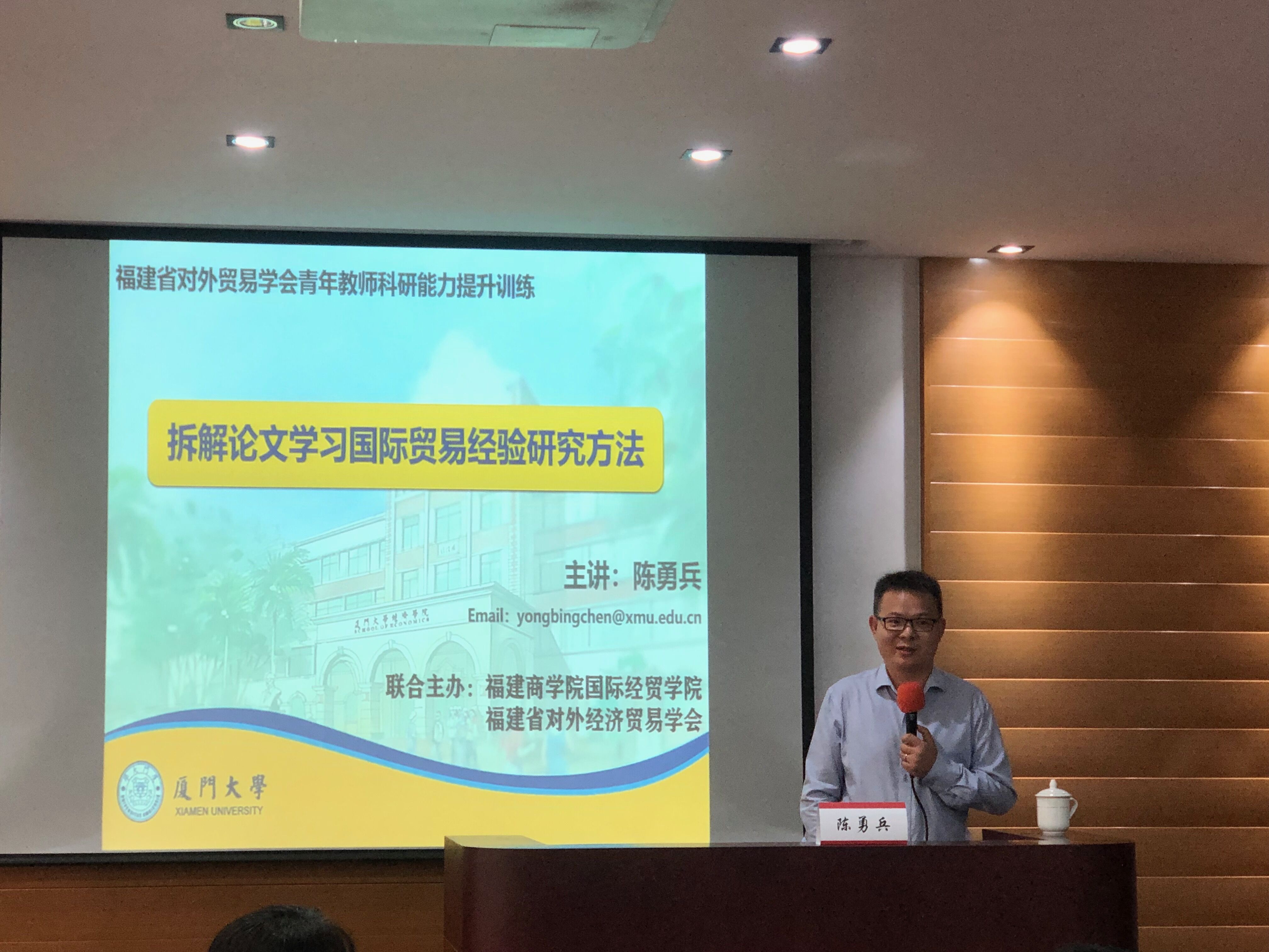 由beat365中文官方网站beat365中文官方网站和福建省对外经济贸易学会联合主办的2021年“国际贸易实证研究方法”培训班于2021年10月30日在beat365中文官方网站鼓楼校区拉开序幕,本次培训班时间安排为10月30日-31日、11月6日-7日,邀请了厦门大学经济学院国际经济与贸易系教授,经济学博士,博士生导师陈勇兵授课。