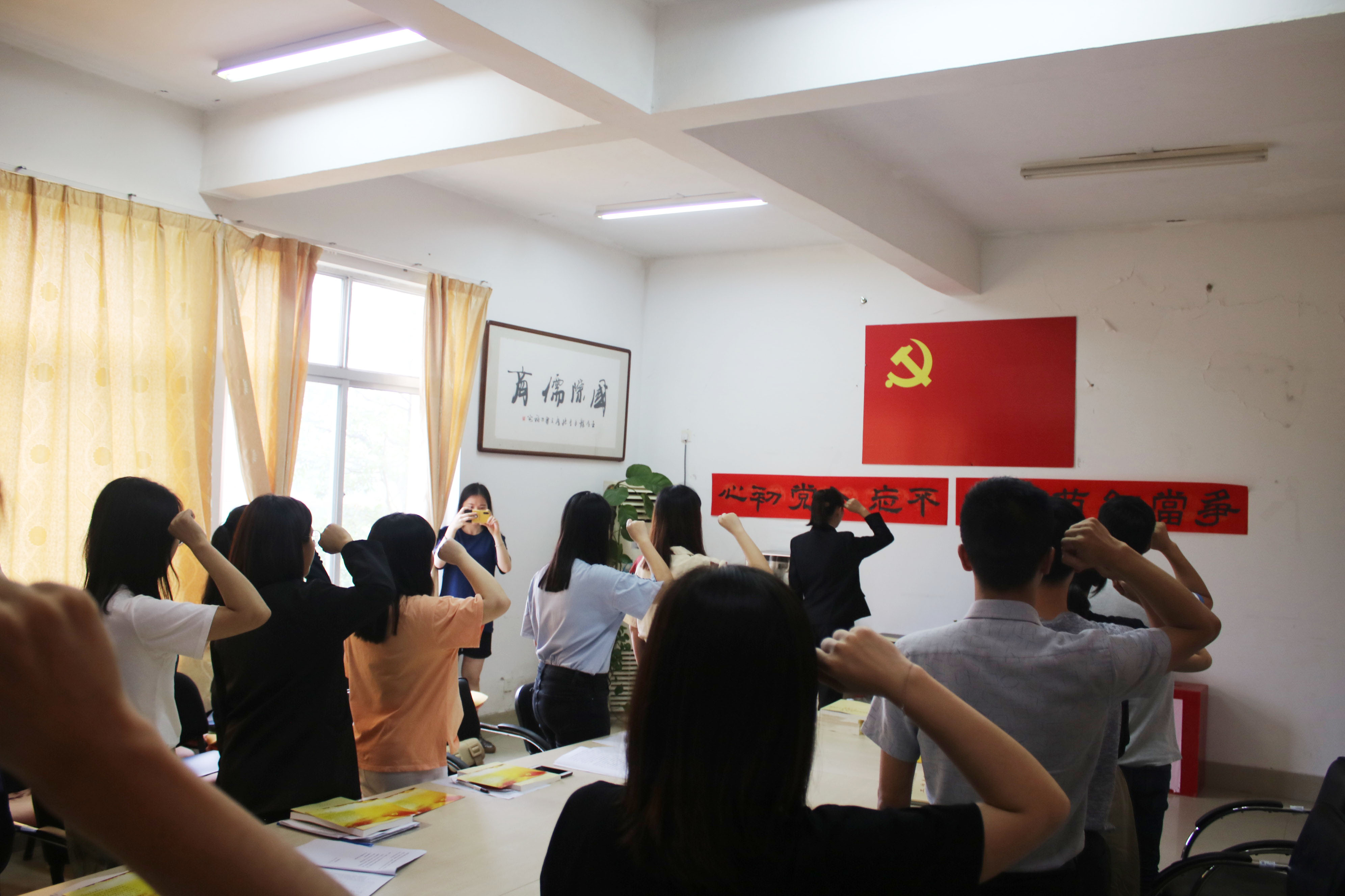 发言过后,国经贸学院许模春副书记为全体毕业生党员赠送《习近平新时代中国特色社会主义思想学习纲要》,提醒毕业生党员坚持理论学习;为部分近期过政治生日的毕业生党员发政治生日贺卡,叮嘱牢记党员身份。之后,党员们一起重温入党誓词,铭记“不忘初心、牢记使命”。