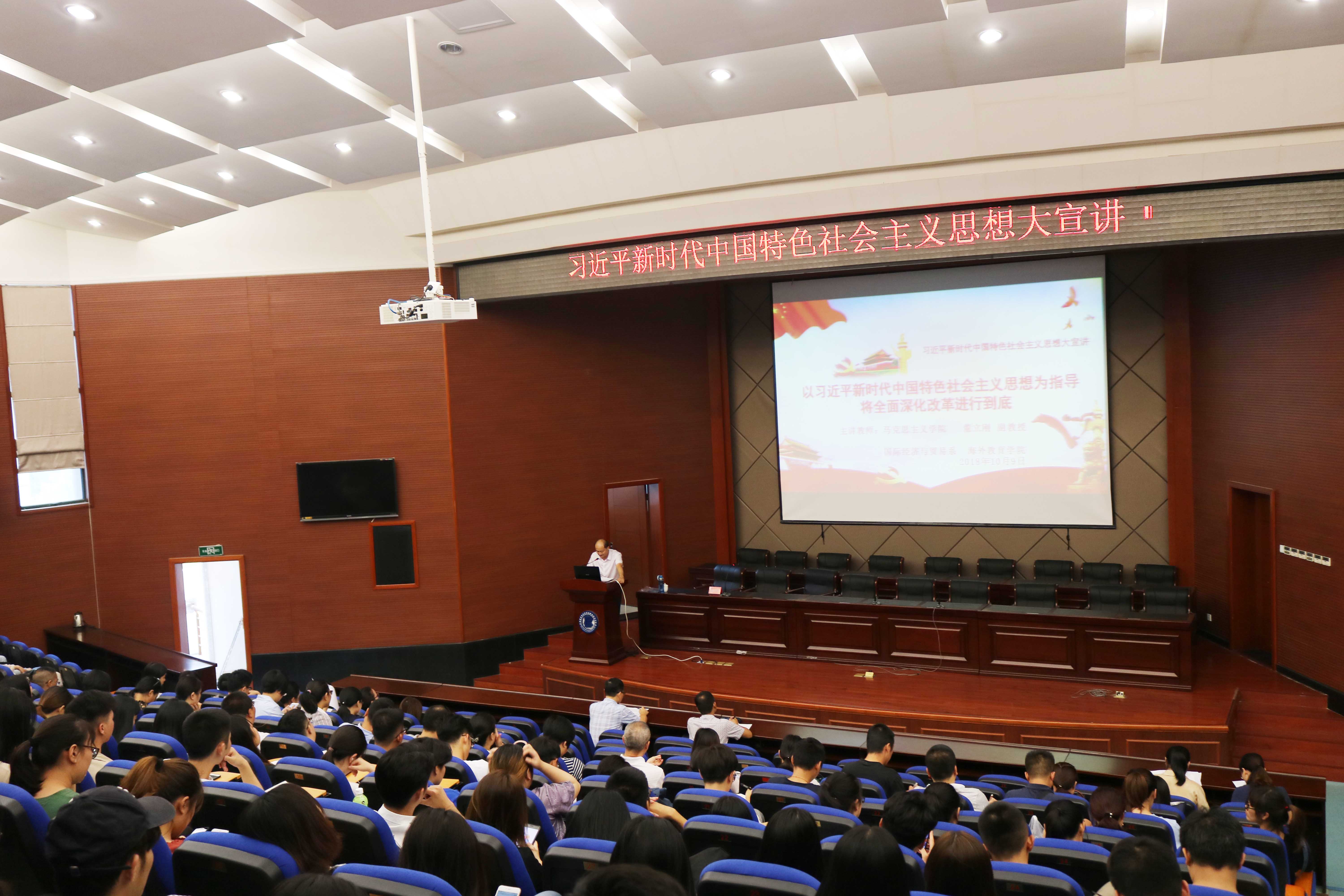 为进一步引导师生深入学习习近平新时代中国特色社会主义思想,深刻理解全面深化改革总目标,10月9日下午,国际经济与贸易系同海外教育学院特邀中共beat365中文官方网站委员会讲师团成员、马克思主义学院副教授董立刚在马尾校区学术报告厅举办专题报告会,主题为 “以习近平新时代中国特色社会主义思想为指导,将全面深化改革进行到底”。两系/院全体教职工、学生代表聆听讲座。