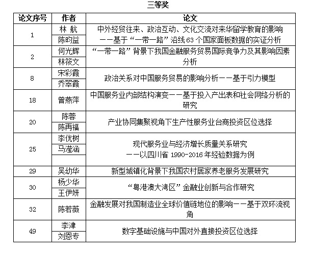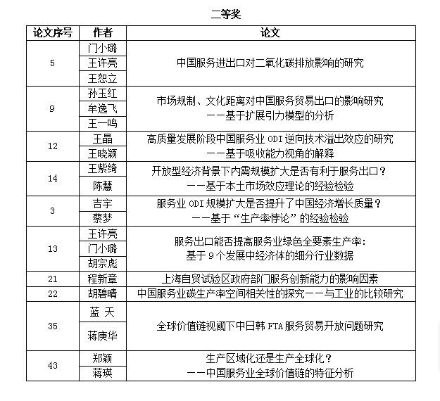作为全国该领域高层次、高水平的学术盛会,本届论坛共收到征文74篇,评选出一等奖5篇,二等奖10篇,三等奖10篇。除主题发言外,特设青年论坛和2个平行论坛,来自对外经济贸易大学、北京师范大学、南开大学、厦门大学、中国农业大学、上海对外经贸大学、暨南大学、四川大学、东北财经大学、广东外语外贸大学、中央编译局全球政治与经济研究中心等全国40多所高校、科研院所的130多名专家学者在论坛上围绕我国服务经济与贸易的各种热点问题展开了深入的研讨和互动、展示最前沿的研究成果。