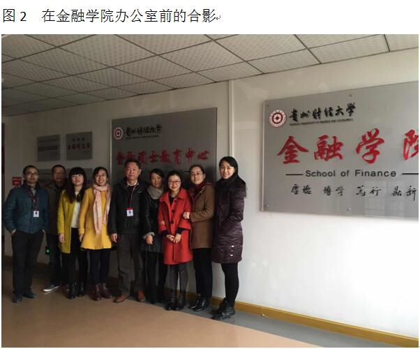 2016年12月1日至2日,经济贸易系金融保险专业教师赴贵州财经大学金融学院学习交流,围绕金融工程本科专业人才培养方案、核心课程教学大纲与教学经验、校内外实训基地以及实践教学的建设与发展,与贵州财经大学教师展开坐谈与交流。贵州财经大学金融学院院长戴亮教授与分管实践的副院长汪寒凝教授以及部分教学骨干热情接待了我们。