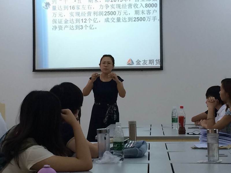 2014618为了让在校学生能更好地了解企业,我系校企合作企业——金友期货有限公司曹慧杰经理到我系为2012级金融保险专业学生进行“期货产品推销”校内实训教学。
