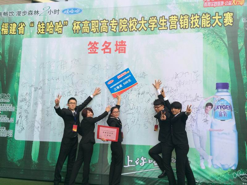 4月30日,福建省高等职业院校技能大赛——“娃哈哈”杯市场营销项目技能比赛对外经济贸易职业技术学院隆重举行。我系经过赛前备赛、层层选拔等工作,在邵宇、詹惠娜两位老师的指导下,跨年级跨专业选拔了陈新杨、郑烨、王欢、于富华、何仕伟五位同学作为代表队参加了此赛项。历经一个月,取得了良好的销售实绩,最终在总结汇报舞台上出色展现了自己的风采,荣获了教育厅颁发的“市场营销技能竞赛三等奖”,以及营销协会与娃哈哈公司共同颁发的“销售奖二等奖”。