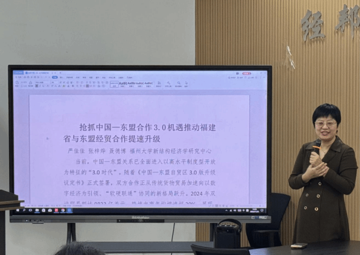 严教授长期扎根金融领域研究,主持多项国家级、省级重大课题,数十项资政建言报告获省市级领导批示,在资政报告撰写与成果转化方面拥有丰富经验。讲座中,严教授首先以当前中国-东盟合作从1.0到3.0版本的最新相关新闻为示例,讲解了如何从时事新闻中捕捉资政建言写作的热点话题。然后,严教授向全体参会人员展示了她与团队成员合作撰写的一篇大篇幅的资政建言文稿。通过对该文稿的解读,她从标题的撰写、段落的编排以及整体框架等方面分享了其资政报告的写作经验。她强调,应用型高校的资政报告要“接地气、有数据、可落地”,避免空泛论述。在互动环节,严教授特别谈到了资政建言与学术论文写作之间存在的行文风格的差异,同时,也分享了调研过程中可能存在的工作难点与应对方法。
