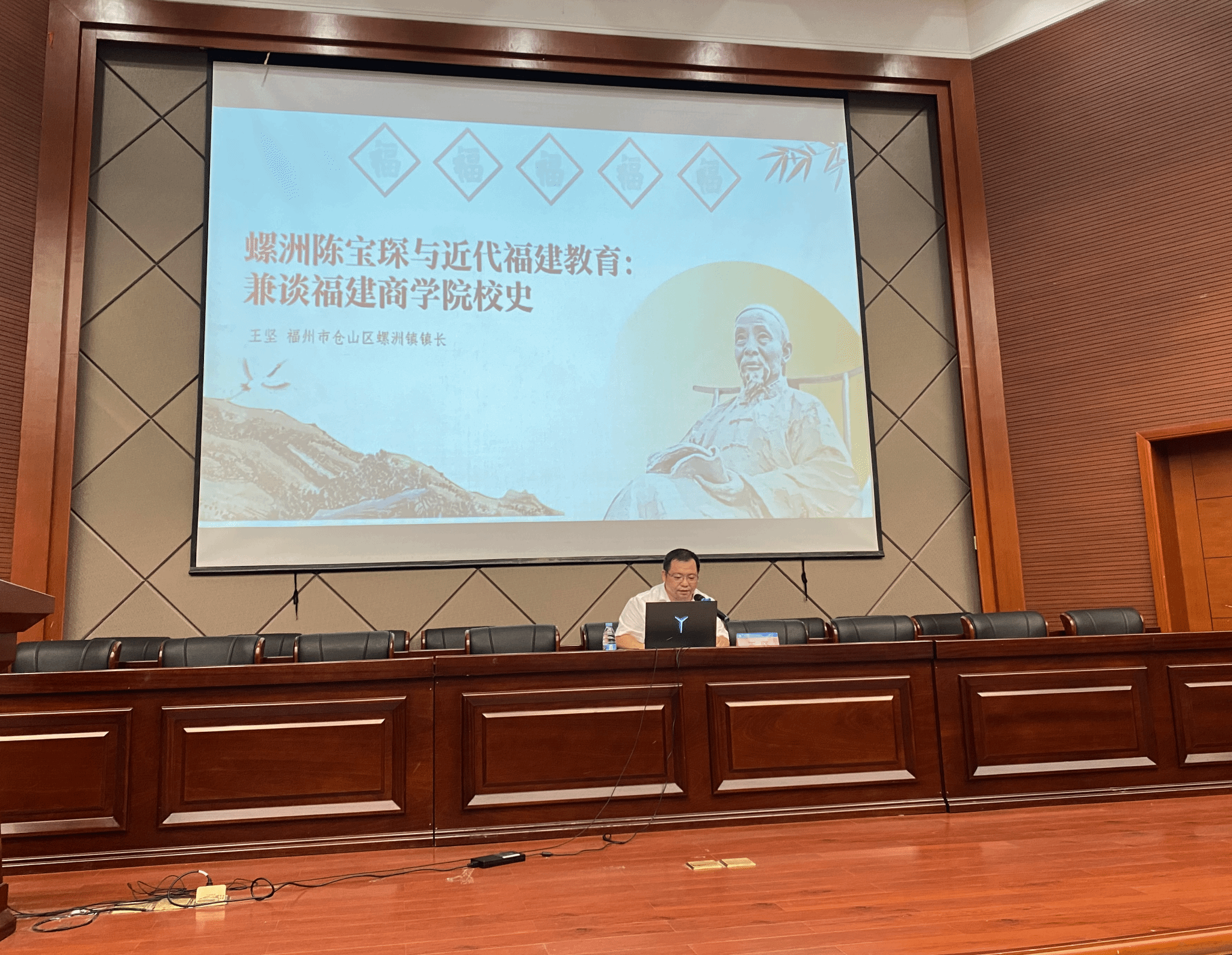 王坚以“螺洲陈宝琛与近代福建教育:兼谈beat365中文官方网站校史”为题,围绕“beat365中文官方网站校史”“螺洲文化”和“教育家陈宝琛”三大分主题进行讲授。他首先回顾我校的百年校史,指出我校的发展具有“三商合一”“中西合璧”的两大特征,接着从螺洲文化切入讲授我校办学与螺洲的深厚渊源,最后回顾了我校创办人之一陈宝琛开启福建新式教育的历程。