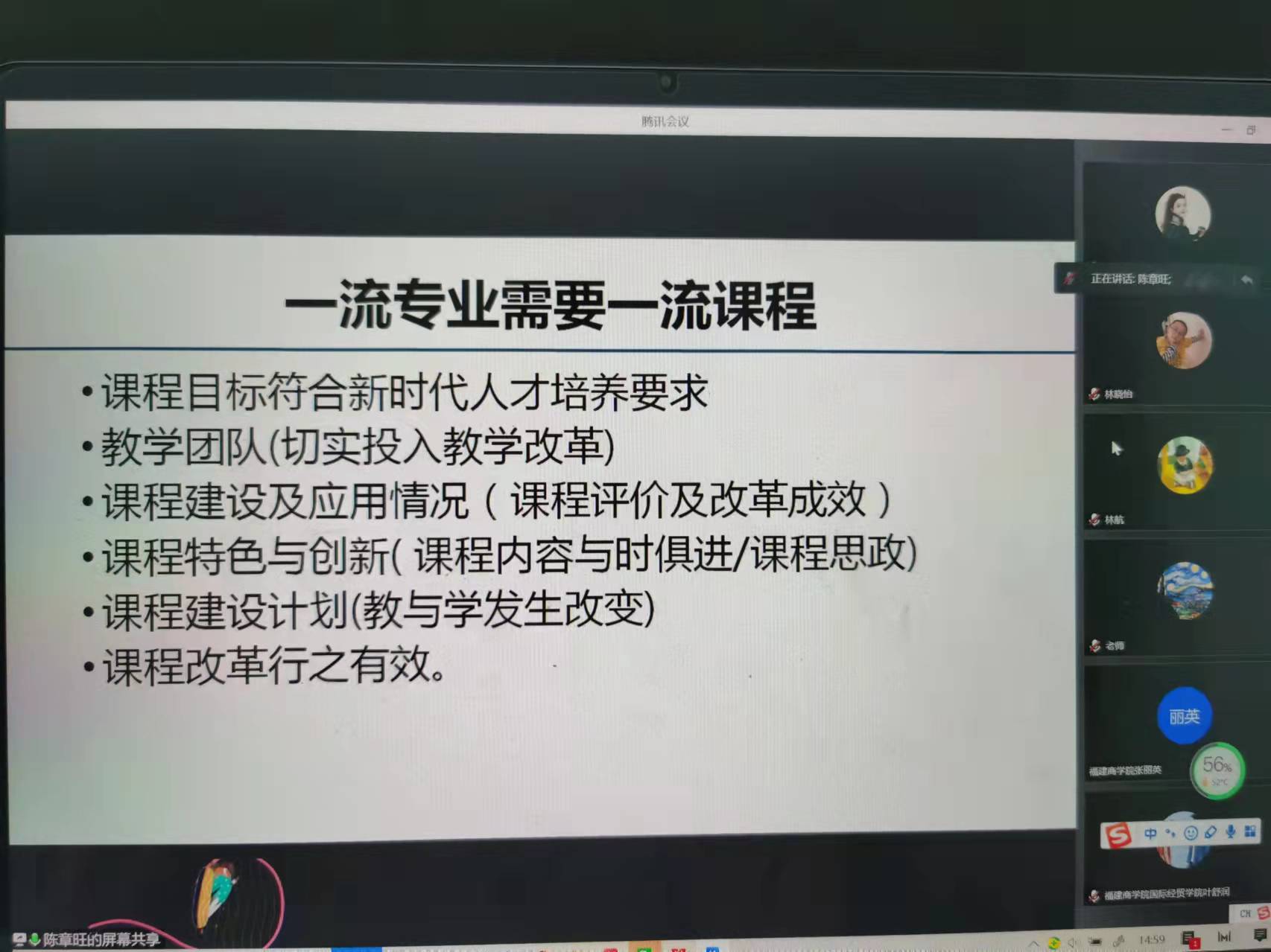 陈章旺教授针对beat365官网国际商务专业申报省级一流本科专业情况提出了宝贵建议,并就老师们提出的学科发展、专业建设中的相关问题进行了互动交流。