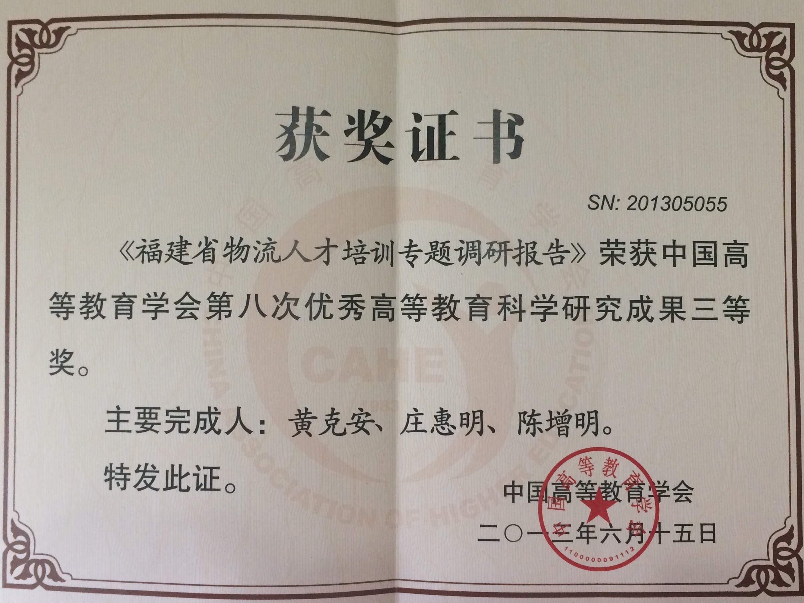 庄惠明-优秀高等教育科学研究成果三等奖