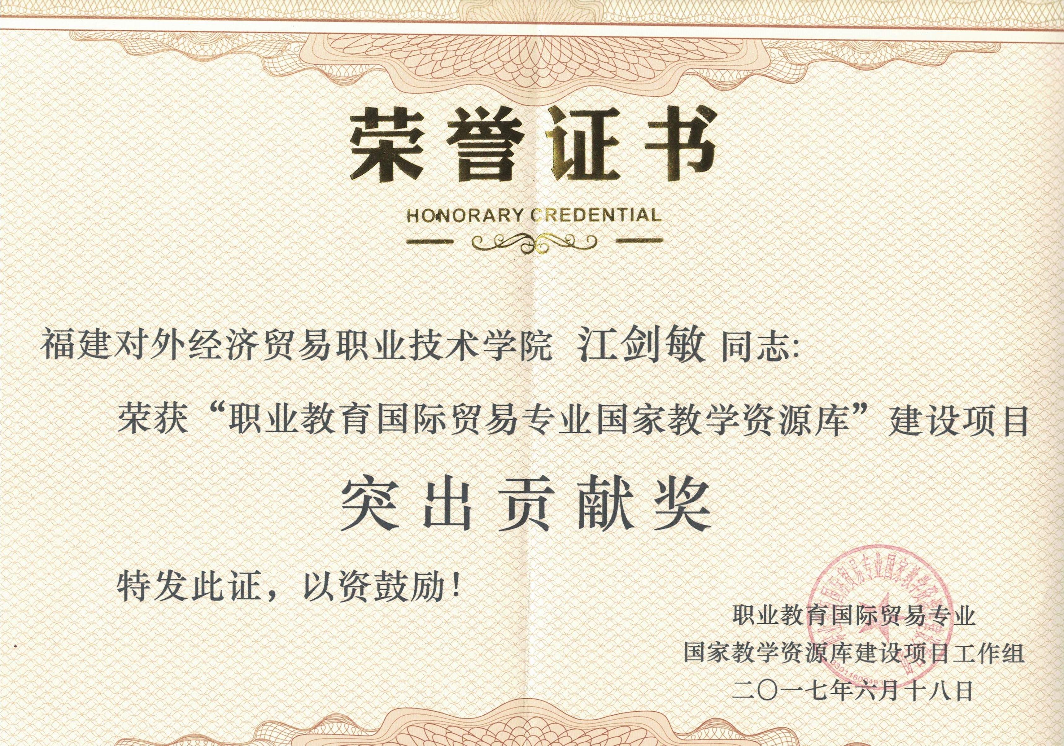 江剑敏-”职业教育国际贸易专业国家教学资源库”建设项目突出...
