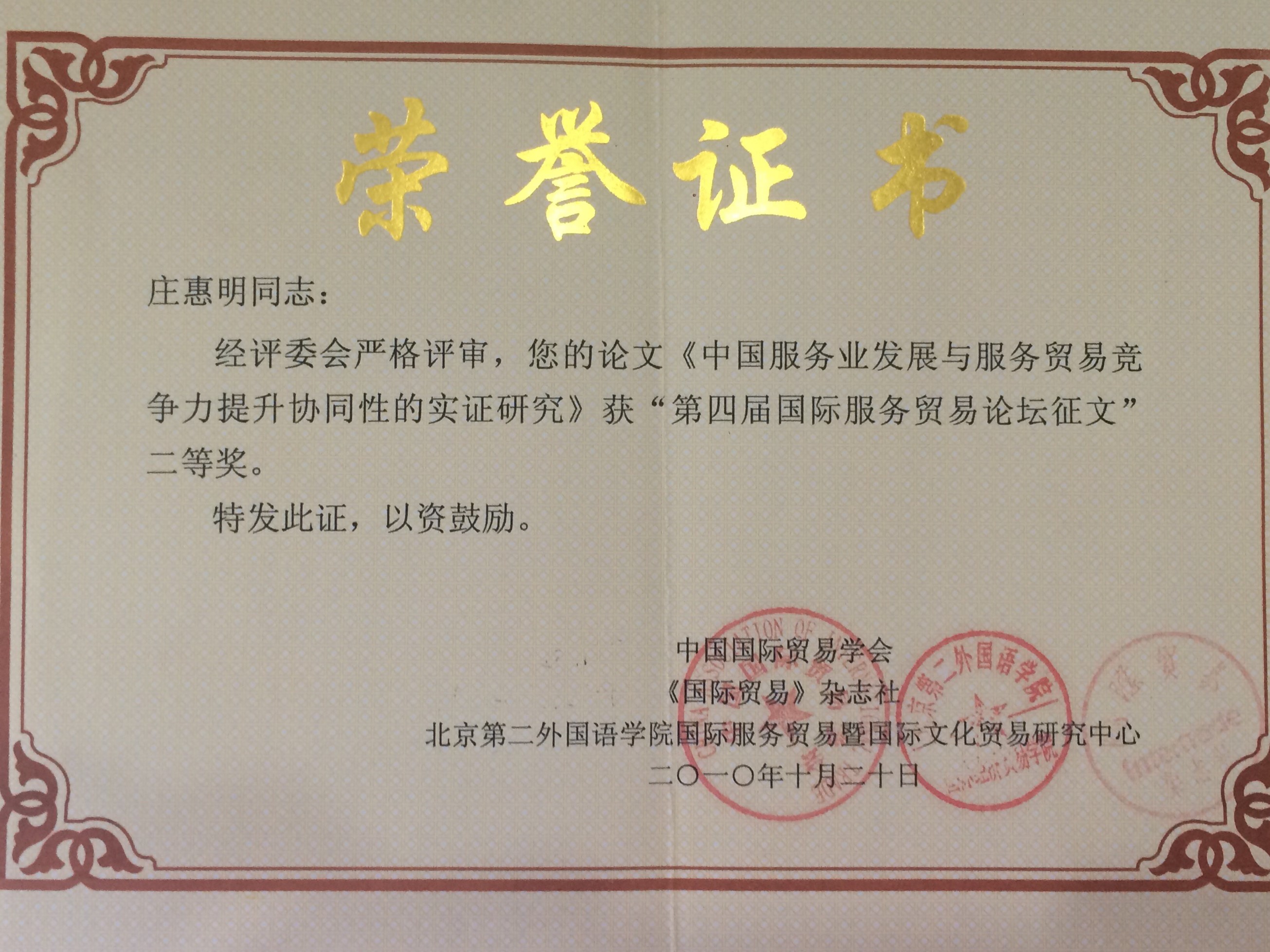 庄惠明-第四届国际服务贸易论坛征文二等奖
